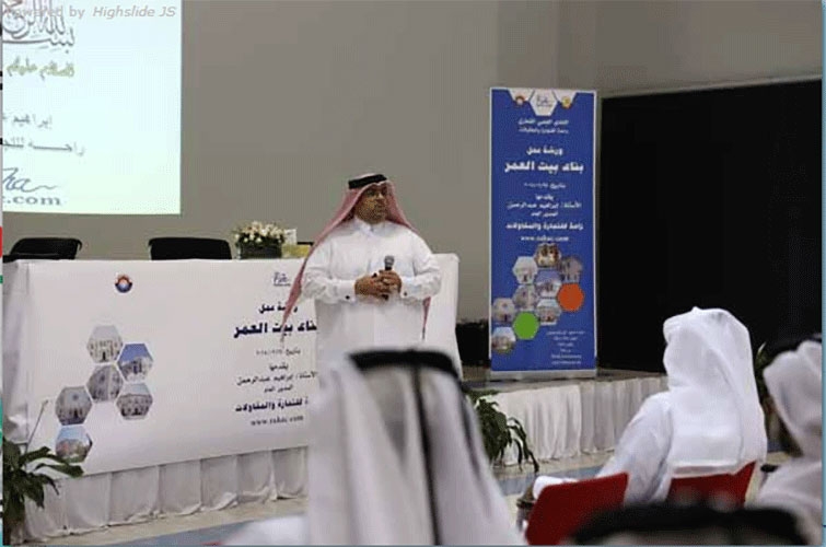 اقيمت محاضرة كيف تبني بيت العمر يوم 25-02-2014 من الساعة 4 وحتي الساعة 9 مساءاً بأشراف راحة للتجارة والمقاولات وألقي المحاضرة السيد الأستاذ/ ابراهيم عبدالرحمن المدير العام وتحت رعاية النادي العلمي القطري ، وحضر المحاضرة عدد كبير من المواطنيين القطريين يفوق الخمسين وهذا لأهمية الموضوع ومدا الأ، والمحاضرة شملة كل الجوانب لبناء بيت العمر ابتداء من ترتيب الأفكار وكيفية البدء وكيفية اختيار الأستشاري والمقاول والتعامل معهم ومتابعة المالك للمقاول والإستشاري حتي نهاية المشروع.