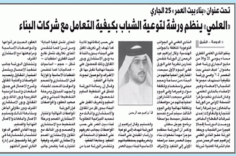 (خبر بجريدة الشرق تحت عنوان ( بناء بيت العمر