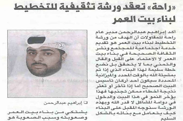 راحة تعقد ورشة تثقيفية للتخطيط لبناء بيت العمر
