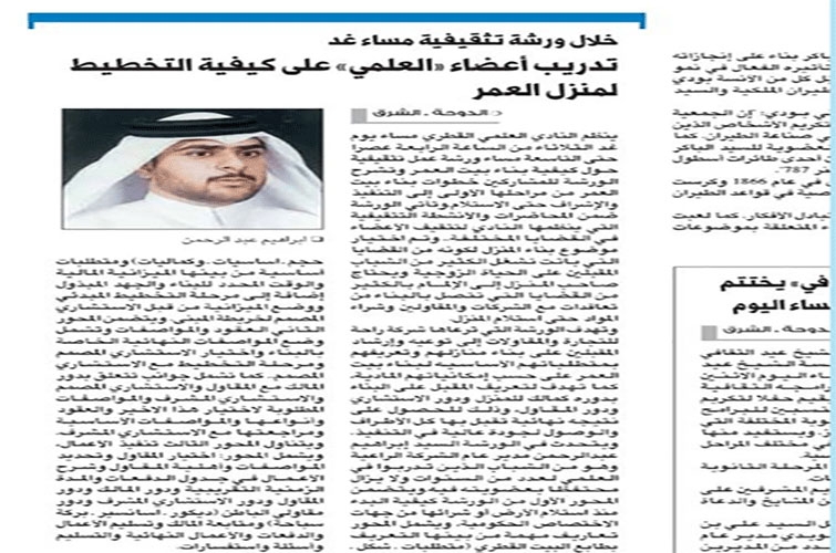 خبر عن ورشة بيت العمر بالنادي العلمي القطري