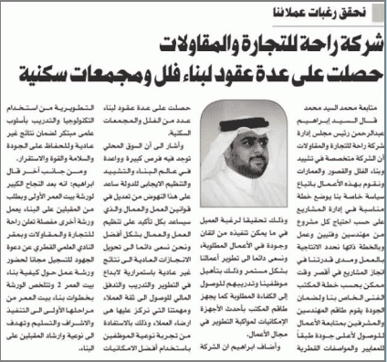 خبر بجريدة الراية تحت عنوان تحقيق رغبات عملائنا