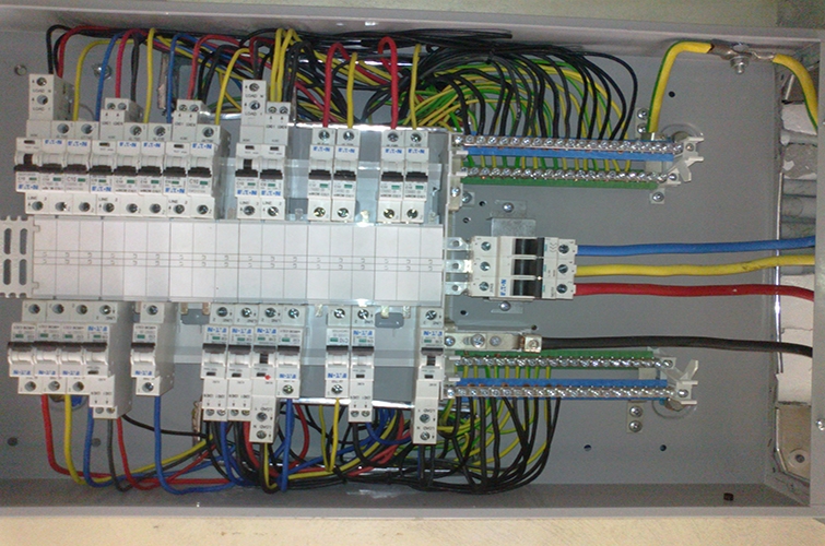 · تكون لكل دائرة محمية قطاع تيار (سيركت بريكر) أو أتوماتيكي بلوحة التوزيع مثل (السخان – تكييف الهواء .. الخ) وتكون لها ماسورتها المنفصلة ولا يجوز تمرير الأسلاك لدائرة أو أكثر بنفس الماسورة.